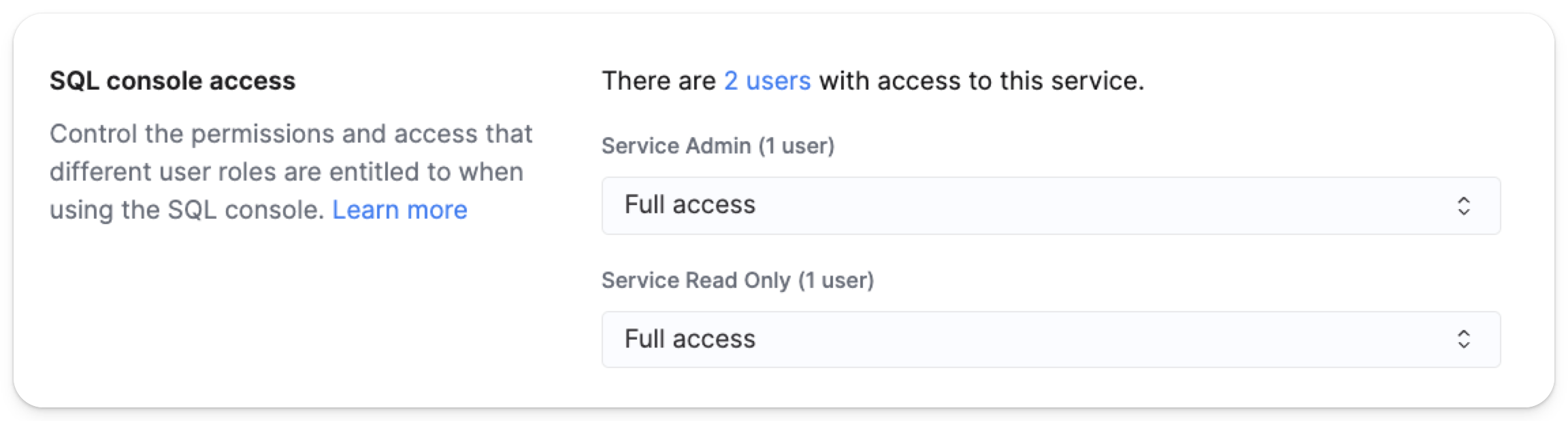 В этом руководстве описано, как настроить назначения ролей для SQL-консоли, которые определяют глобальные права доступа к консоли и функции, доступные пользователю в консоли Cloud.